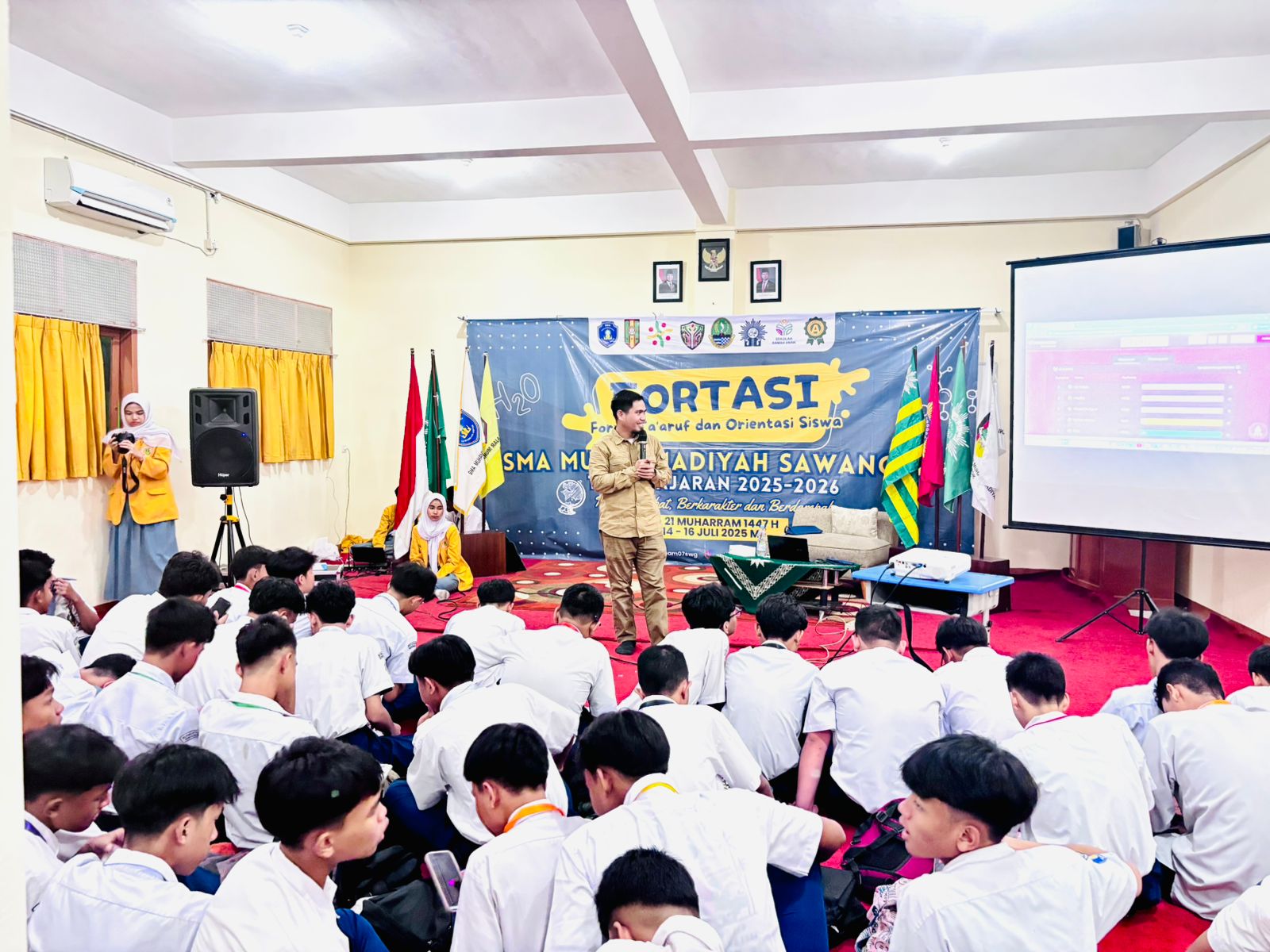 Kegiatan bertajuk “Penguatan Literasi Digital bagi Generasi Muda” ini dilaksanakan pada Selasa, 15 Juli 2025, di aula SMA Muhammadiyah Sawangan. Sebanyak 92 siswa mengikuti kegiatan ini dengan penuh antusias. Momentum kegiatan ini sengaja disinergikan dengan pelaksanaan Fortasi (Forum Taaruf Siswa), program tahunan pengenalan lingkungan sekolah yang dikhususkan bagi peserta didik baru di SMA Muhammadiyah Sawangan.