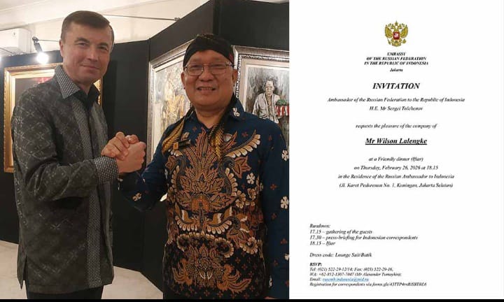 Mabesnews.com,-Jakarta – Kedutaan Besar Federasi Rusia di Indonesia mengundang tokoh pers dan aktivis kebangsaan, Wilson Lalengke, untuk menghadiri acara Friendly Dinner (Iftar – Buka Puasa) bersama Duta Besar Rusia untuk Indonesia, Yang Mulia Mr. Sergei Tolchenov. Acara ini akan berlangsung di kediaman resmi Duta Besar Rusia di Jl. Karet Pedurenan No. 1, Kuningan, Jakarta Selatan, pada Kamis, 26 Februari 2026 pukul 18.15 WIB.