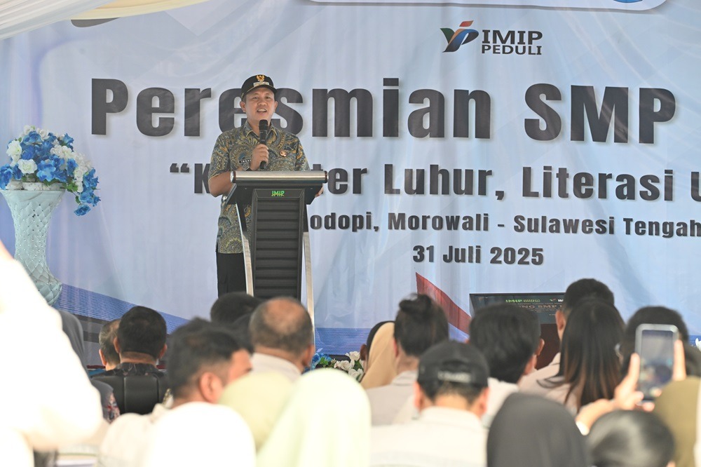 Dalam sambutannya, Bupati Iksan menegaskan bahwa keberadaan SMP IMIP merupakan hasil nyata dari sinergi antara pemerintah daerah dan sektor industri dalam mendukung kemajuan pendidikan.